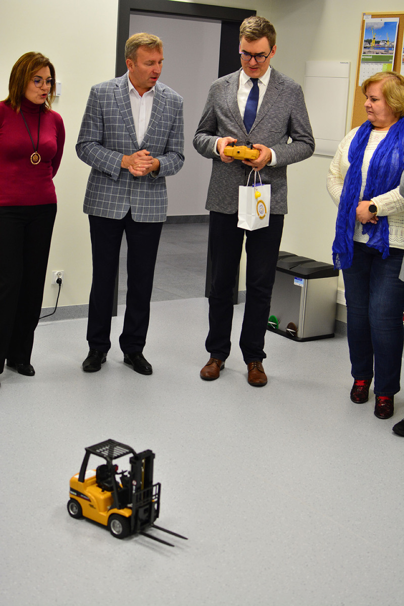 Słowa podziękowań i gratulacje za ogrom podjętej pracy przekazali w swoich wystąpieniach także Starostwa Powiatu Wadowickiego p. Mirosław Sordyl oraz jego zastępca p. Wojciech Polak. Podkreślali oni istotną rolę utworzenia tej placówki i jej strategiczną misję dla podtrzymania i rozwoju spedycji, nie tylko w regionie powiatu Wadowickiego, ale całej Małopolski. W oficjalnej części zabrał głos, przybyły także Poseł na Sejm RP p. Filip Kaczyński, a po nim p. Dariusz Styrma Dyrektor Departamentu Edukacji Urzędu Marszałkowskiego Województwa Małopolskiego, p. Józef Łasak Przewodniczący Rady Powiatu Wadowickiego, p. Anna Szewczyk kierownik Biura Projektów Edukacyjnych oraz Burmistrz Andrychowa p. Beata Smolec.