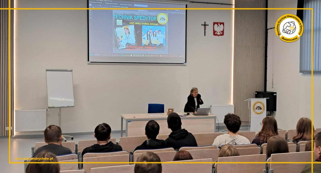29.10.2025 r. gościliśmy w naszym BCU grupę 50 uczniów klas ósmych z SP 5 w Andrychowie. W auli odbyła się prelekcja, podczas której doradcy zawodowi promowali kształcenie zawodowe w branży spedycyjnej. Następnie nauczyciel spedycji pani Aneta Skowron przedstawiła przyszłym spedytorom nowoczesne pracownie naszego BCU oraz magazyn spedycji i plac manewrowy. Mamy nadzieję, że wśród tak […]